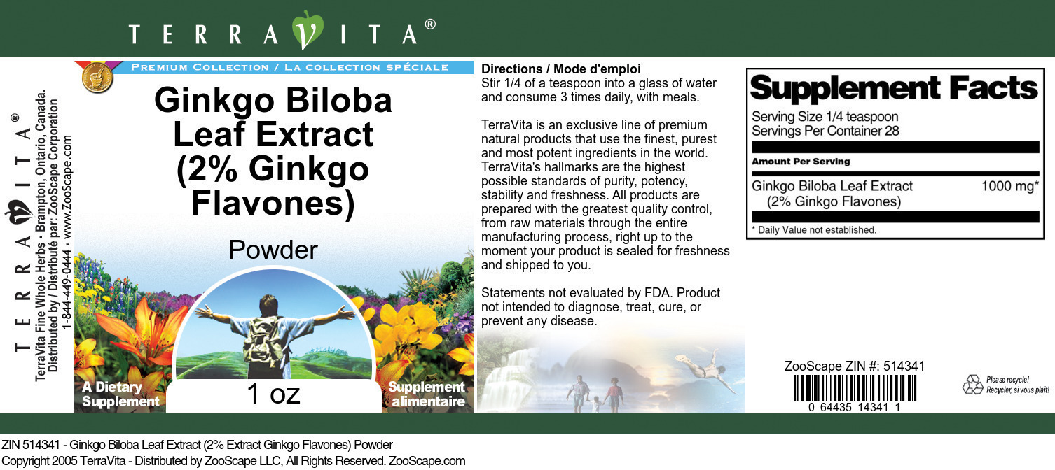| Ginkgo Biloba Leaf Extract (2% Ginkgo Flavones) Powder | 4 oz | 514340 | $43.67 | |||