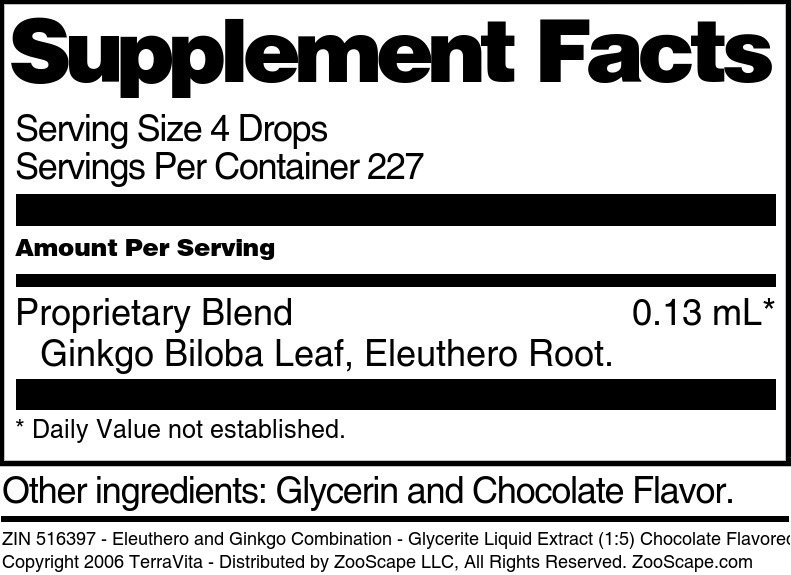 | Eleuthero and Ginkgo Combination - Glycerite Liquid Extract (1:5) Chocolate Flavored Alcohol-Free | 1 oz - Chocolate | 516397 | $19.50 | |||