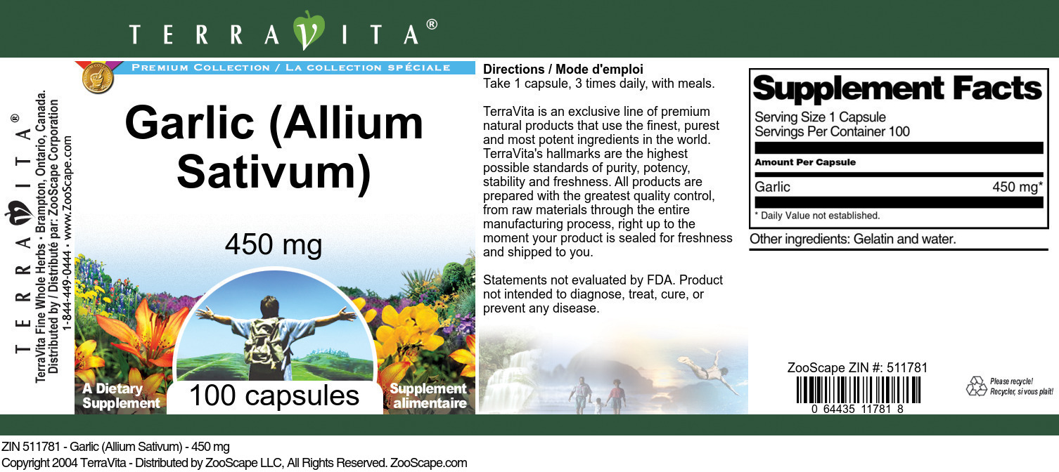 | Garlic (Allium Sativum) - 450 mg | 100 capsules | 511781 | $20.44 | |||