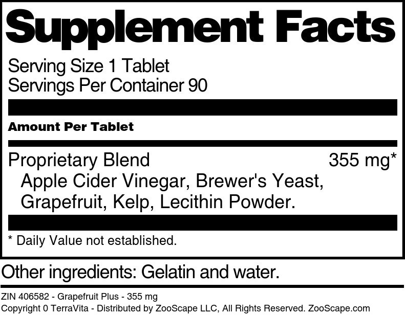 Grapefruit Plus - 355 mg 90 tablets 406582 $12.90