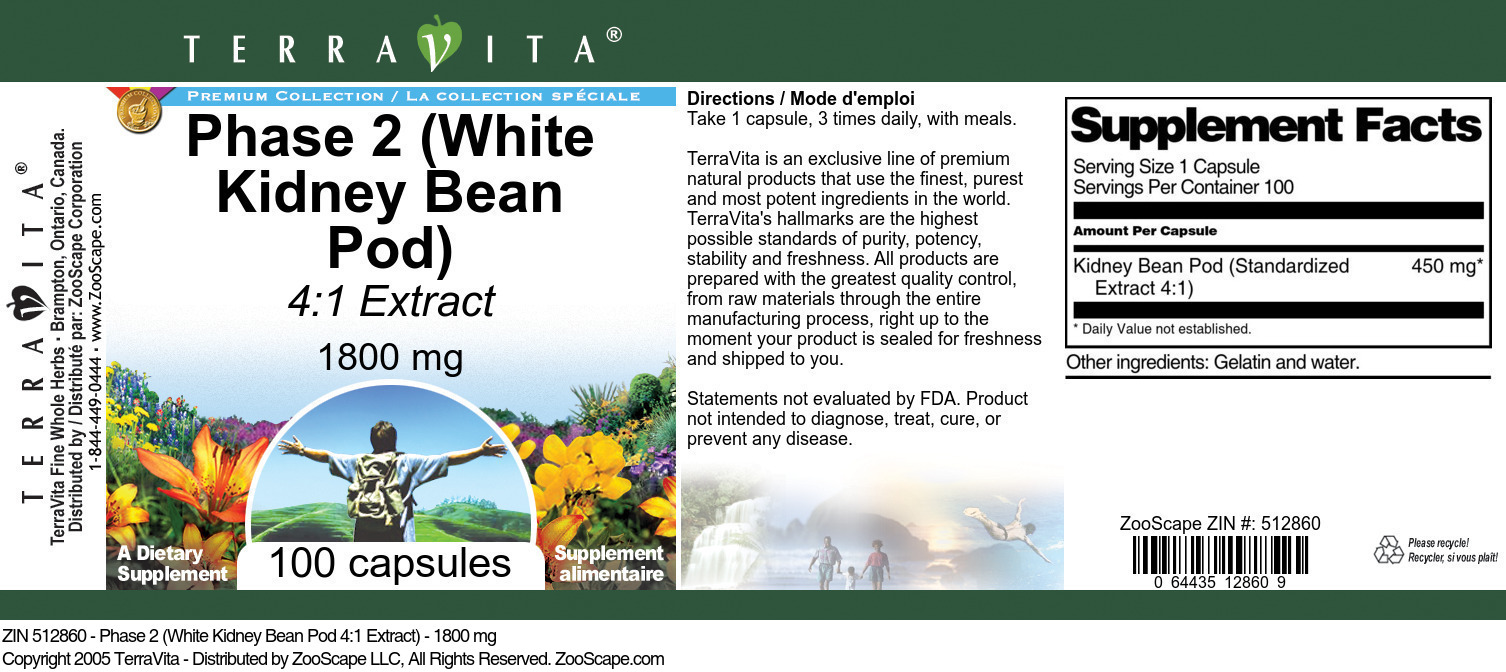 | Phase 2 (White Kidney Bean Pod 4:1 Extract) - 1800 mg | 100 capsules | 512860 | $27.55 | |||