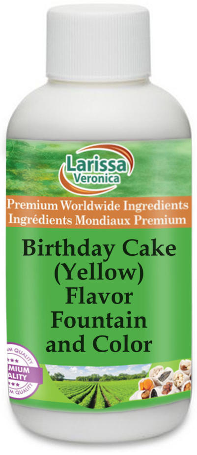 Our Birthday Cake (Yellow) Flavor Fountain and Color is specially designed for use with sherbets, sorbets, hard ice cream, soft-serve ice cream, yogurt, shakes, smoothies and much more. This Flavor Fountain and Color is unsweetened, colored, appropriate for low-fat and / or low-sugar recipes and gluten-free. Store at room temperature.
